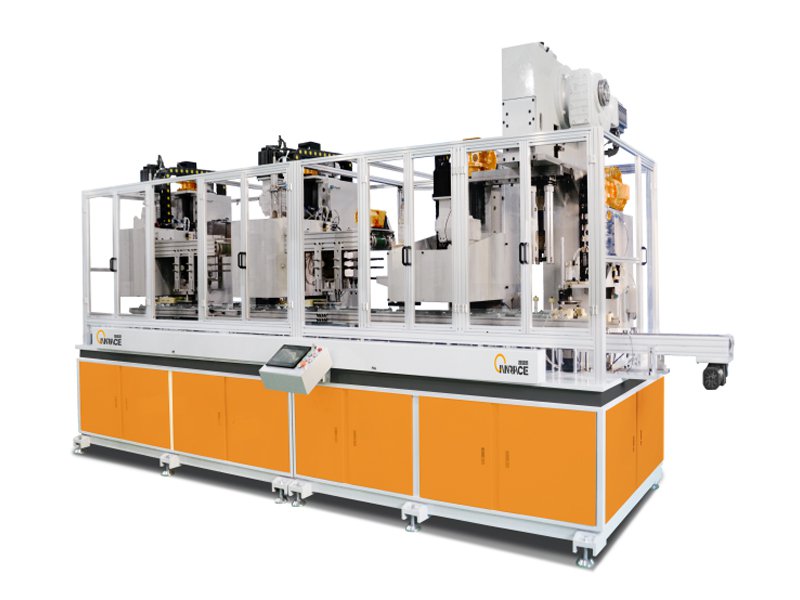 此生产线采用纯机械式凸轮传动,凸轮送罐,凸轮抱罐。速度连续可调,配置有卡罐保护装置,令生产过程安全流畅。专利设计的胀方工位复位槽,令胀方工序更久耐用,克服了使用弹簧的弹簧疲劳问题。内外槽轮式翻边工序,令翻边工序均匀,快速同时保证了罐身的卷封质量。